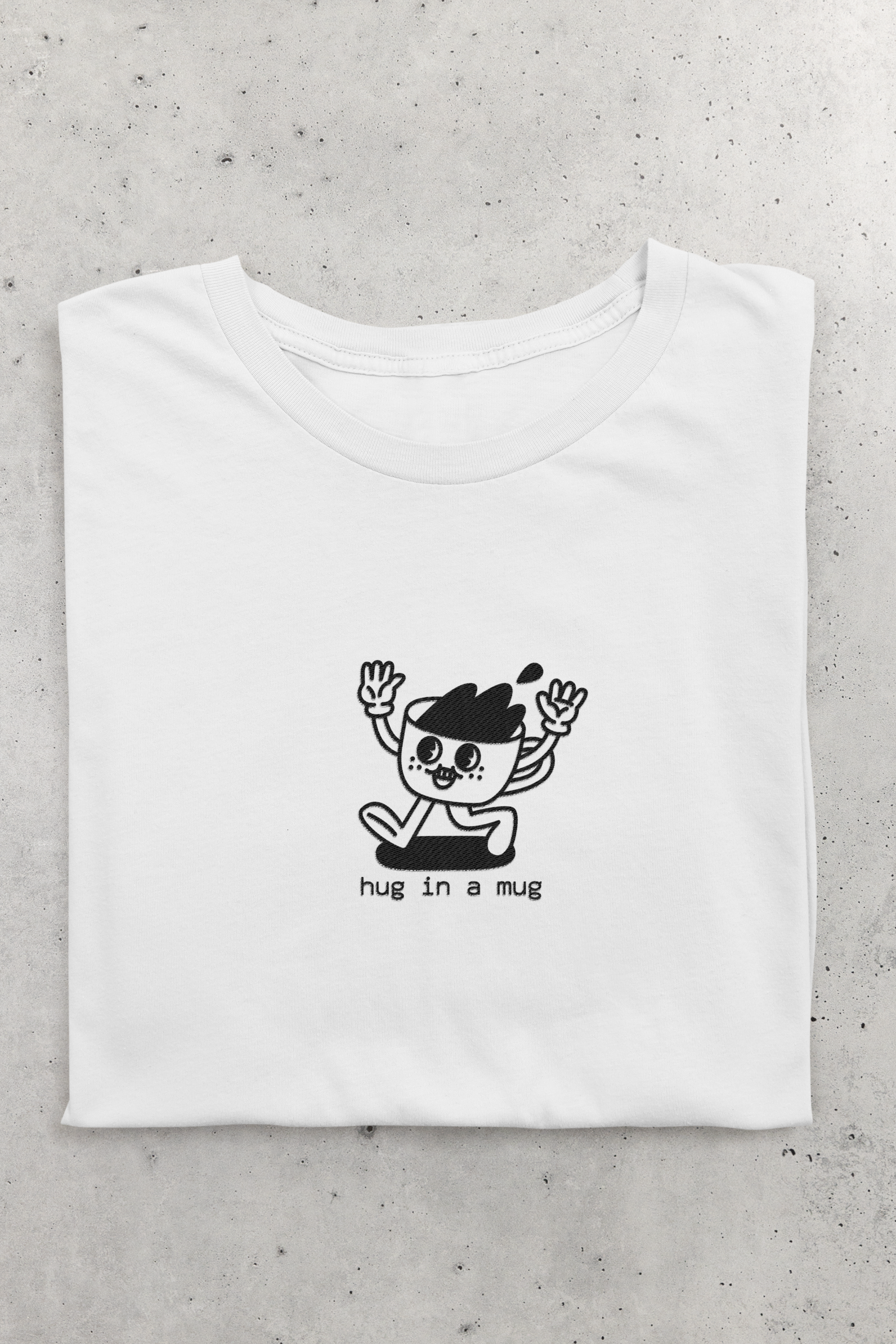 Geborgenheit zum Anziehen: Dieses Shirt bringt das Gefühl einer warmen Umarmung in die Sprache des Kaffees. Ein freundliches, nahbares Shirt voller Charme – ideal für alle, die Kaffee nicht nur trinken, sondern fühlen.